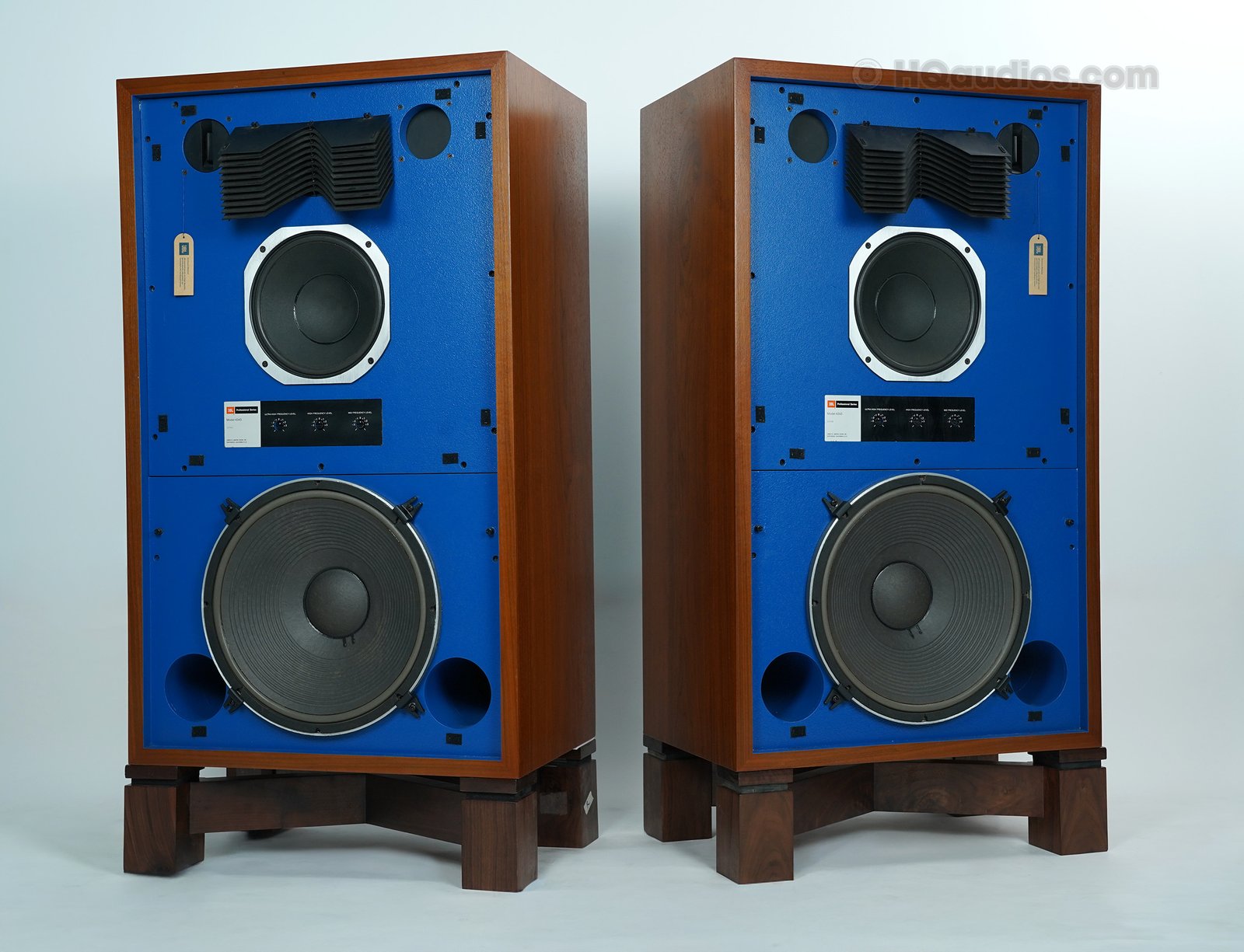 Classic JBL Design – Iconic blue baffle with walnut veneer cabinets