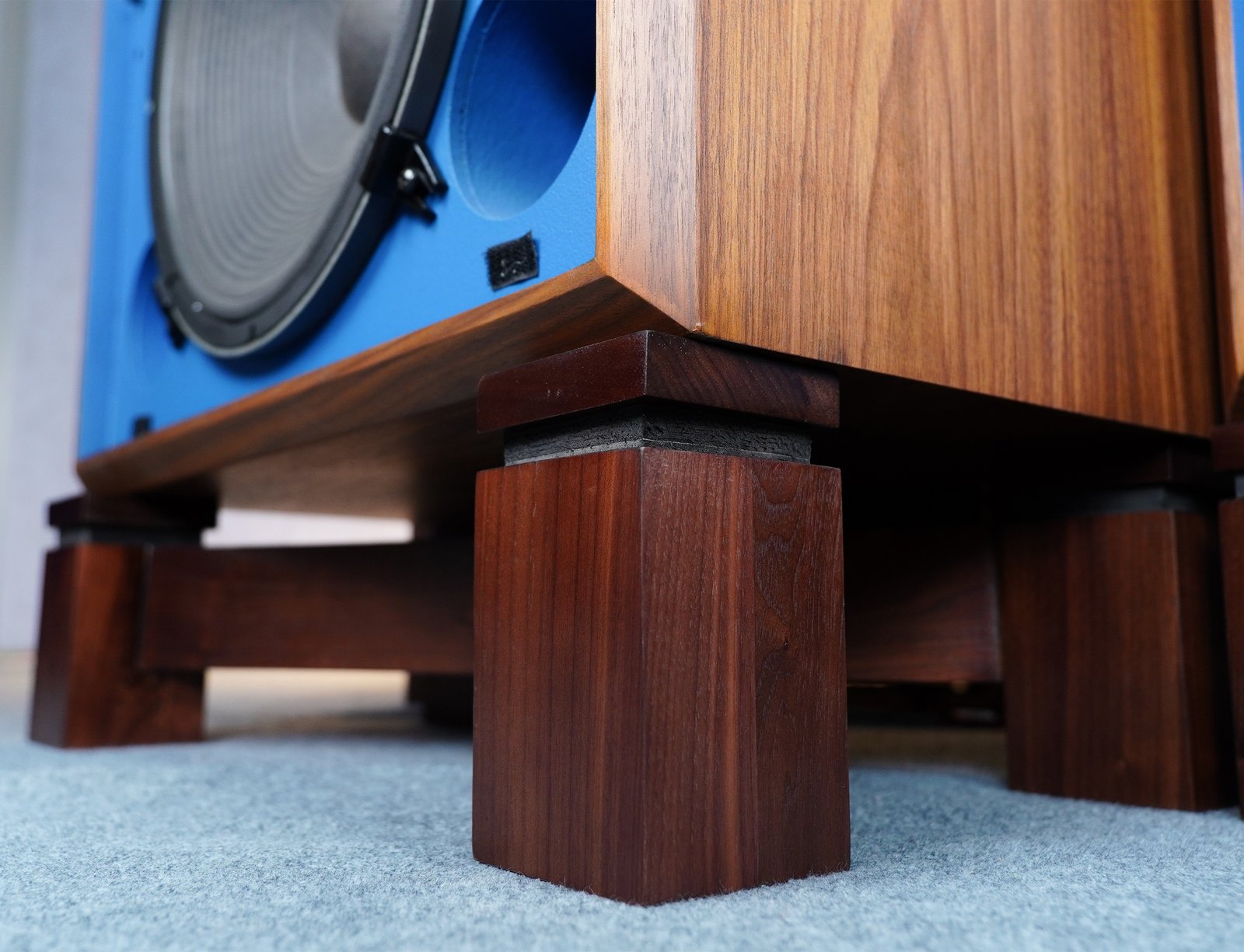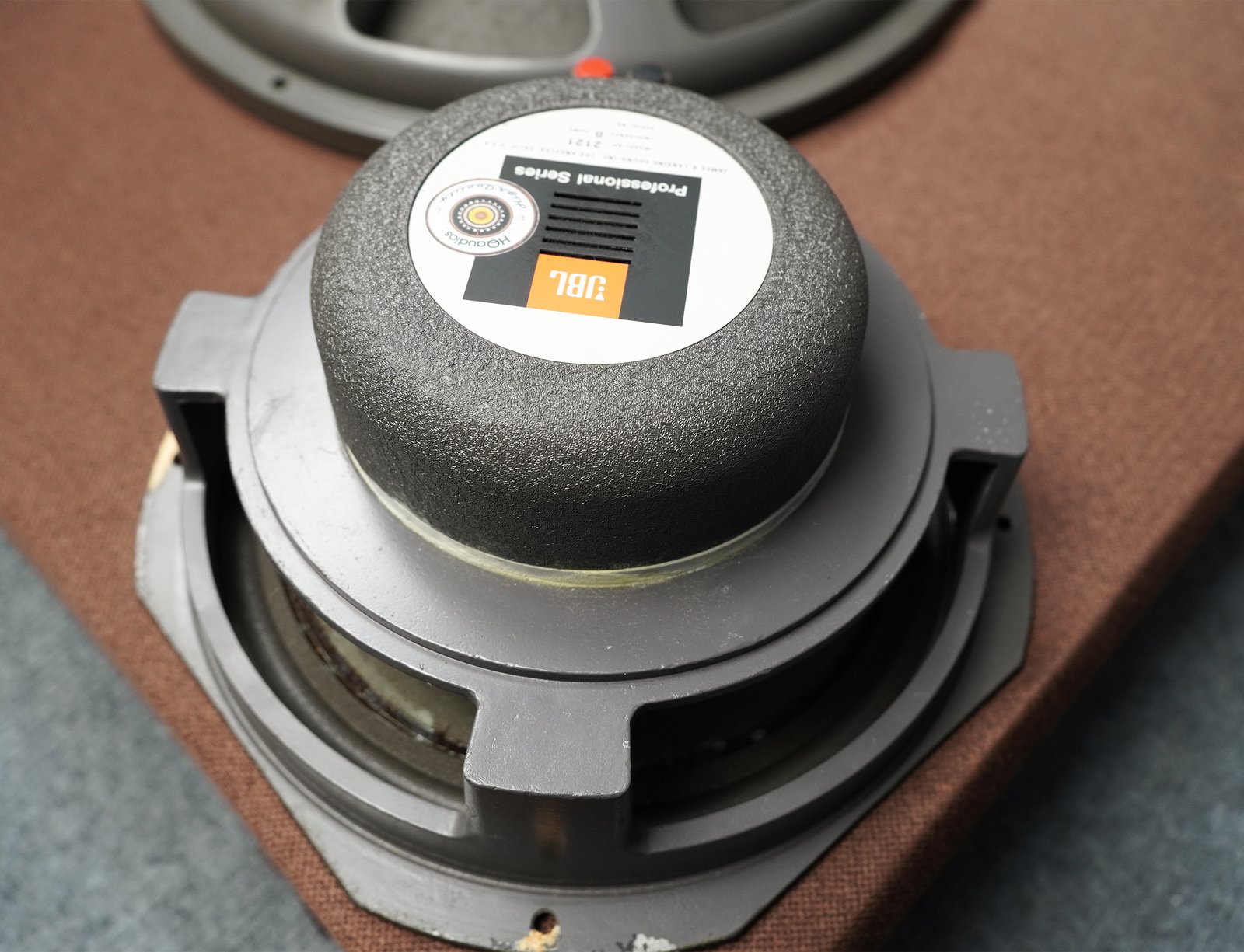 - Woofers: Old foam surrounds removed, cones cleaned and re-centered. Refoamed using JBL-spec treated surrounds. Voice coils inspected under magnification, dust caps re-sealed where needed.