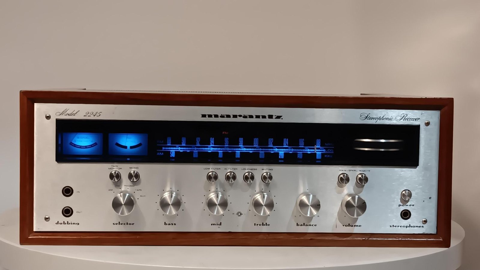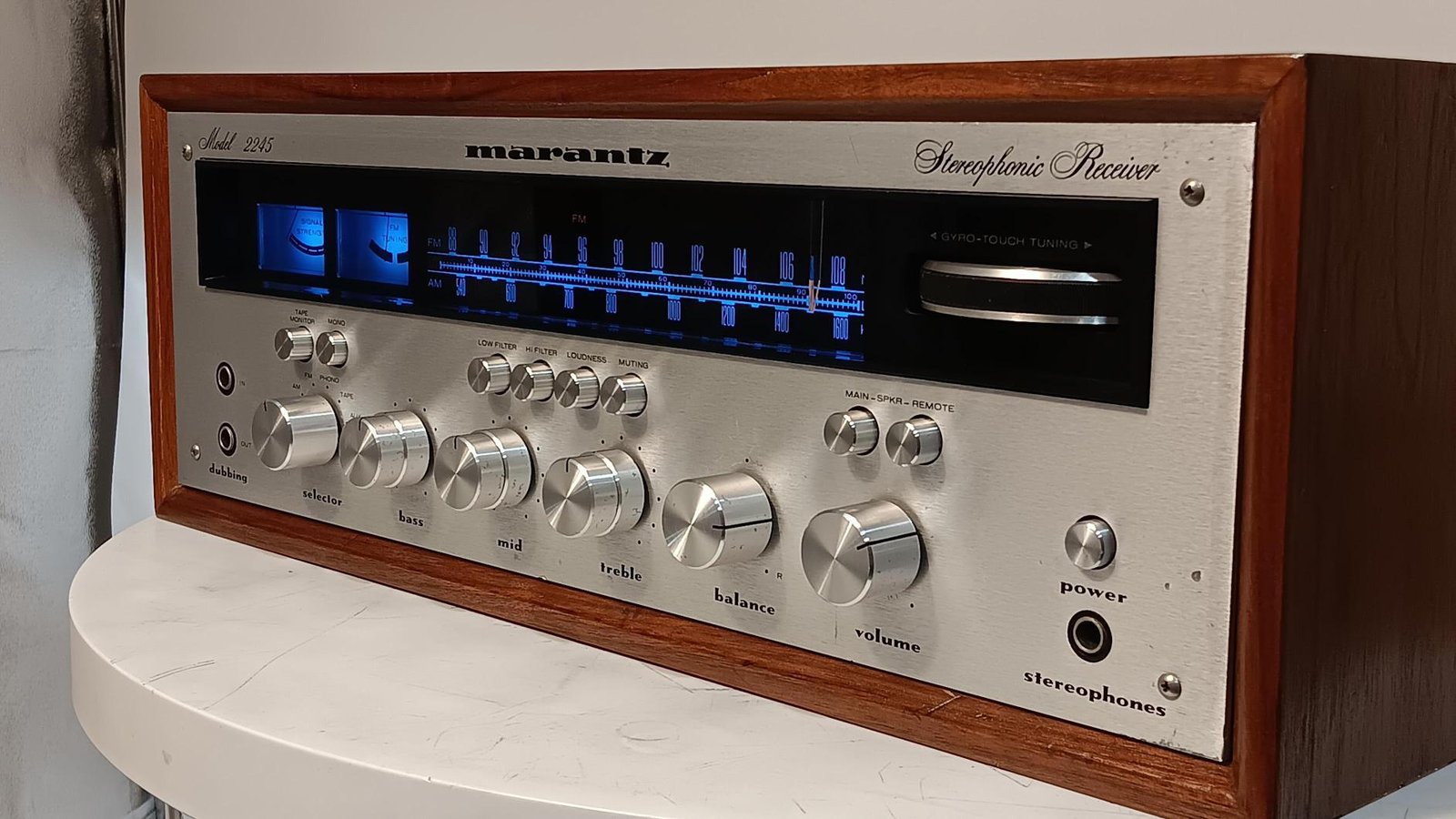 This Marantz 2245 delivers the classic Marantz warmth and dynamics that defined 1970s hi-fi, it is both a powerful receiver and a stunning collector centerpiece