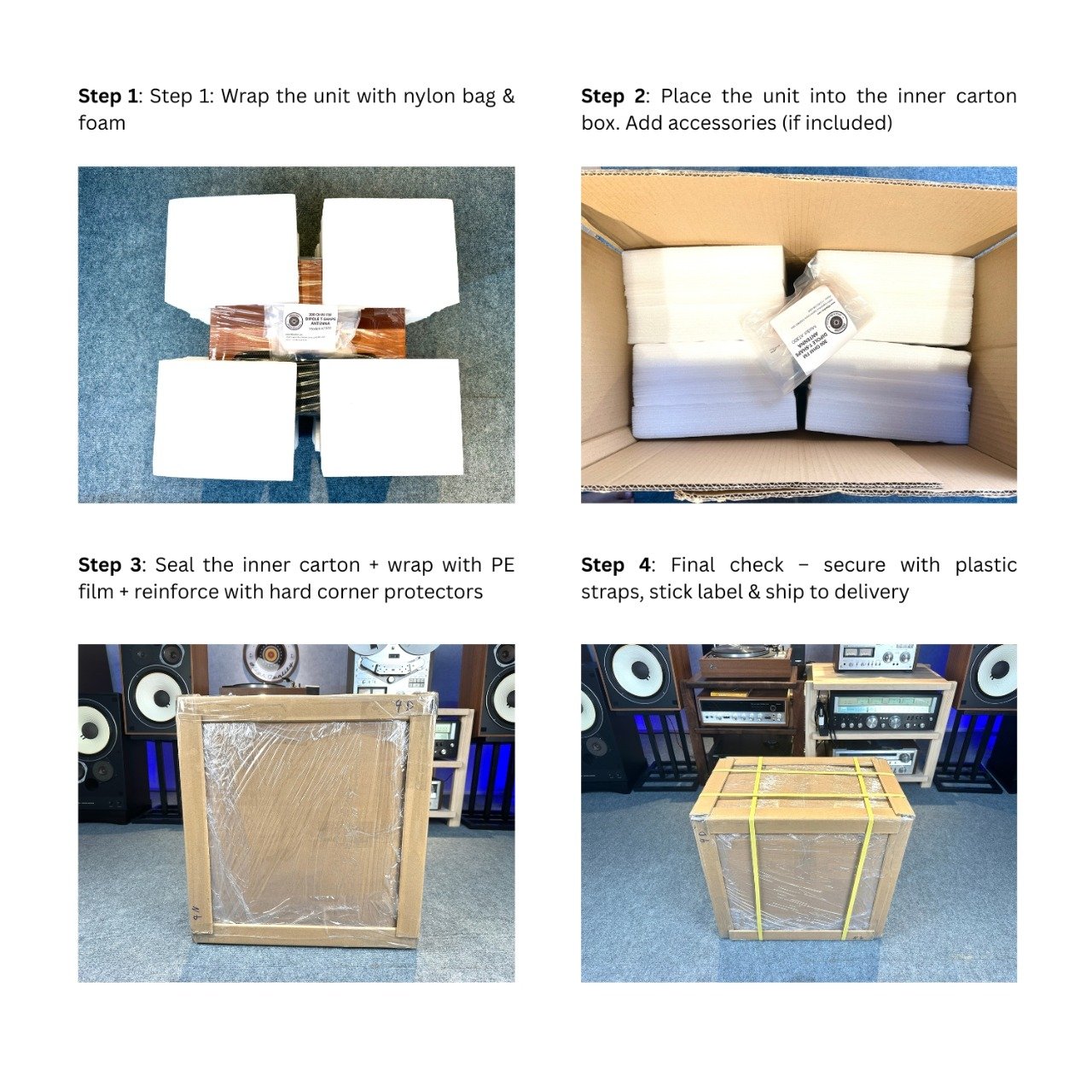 • Each unit is carefully packed using: