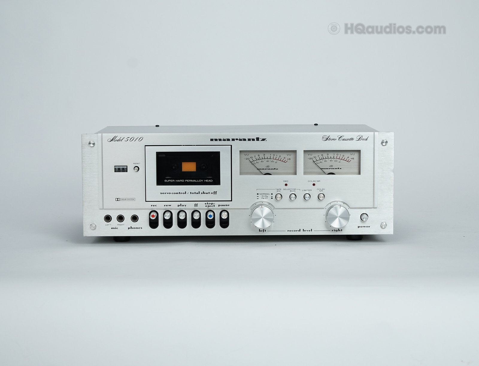 The Marantz Model 5010 is a premium stereo cassette deck from the golden era of analog audio. With its sleek brushed aluminum faceplate, dual VU meters, and servo-controlled transport system, the 5010 brings both technical finesse and vintage charm to any audio setup.