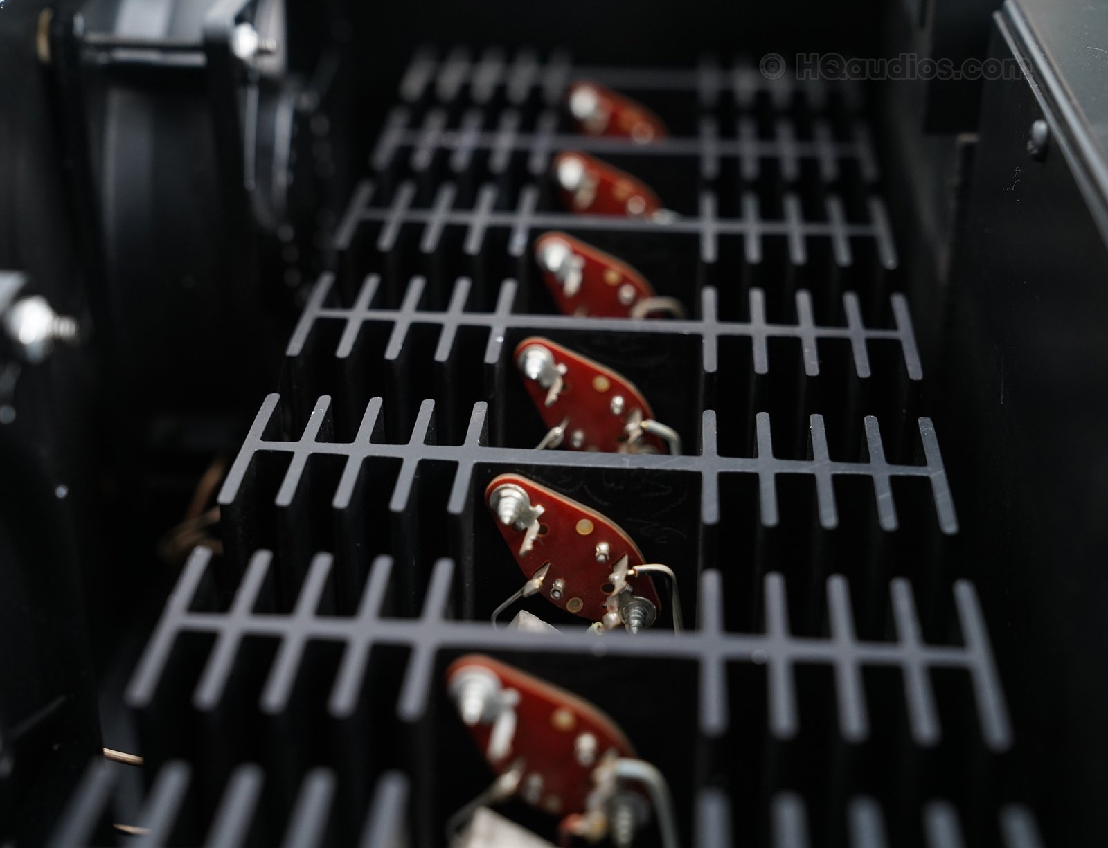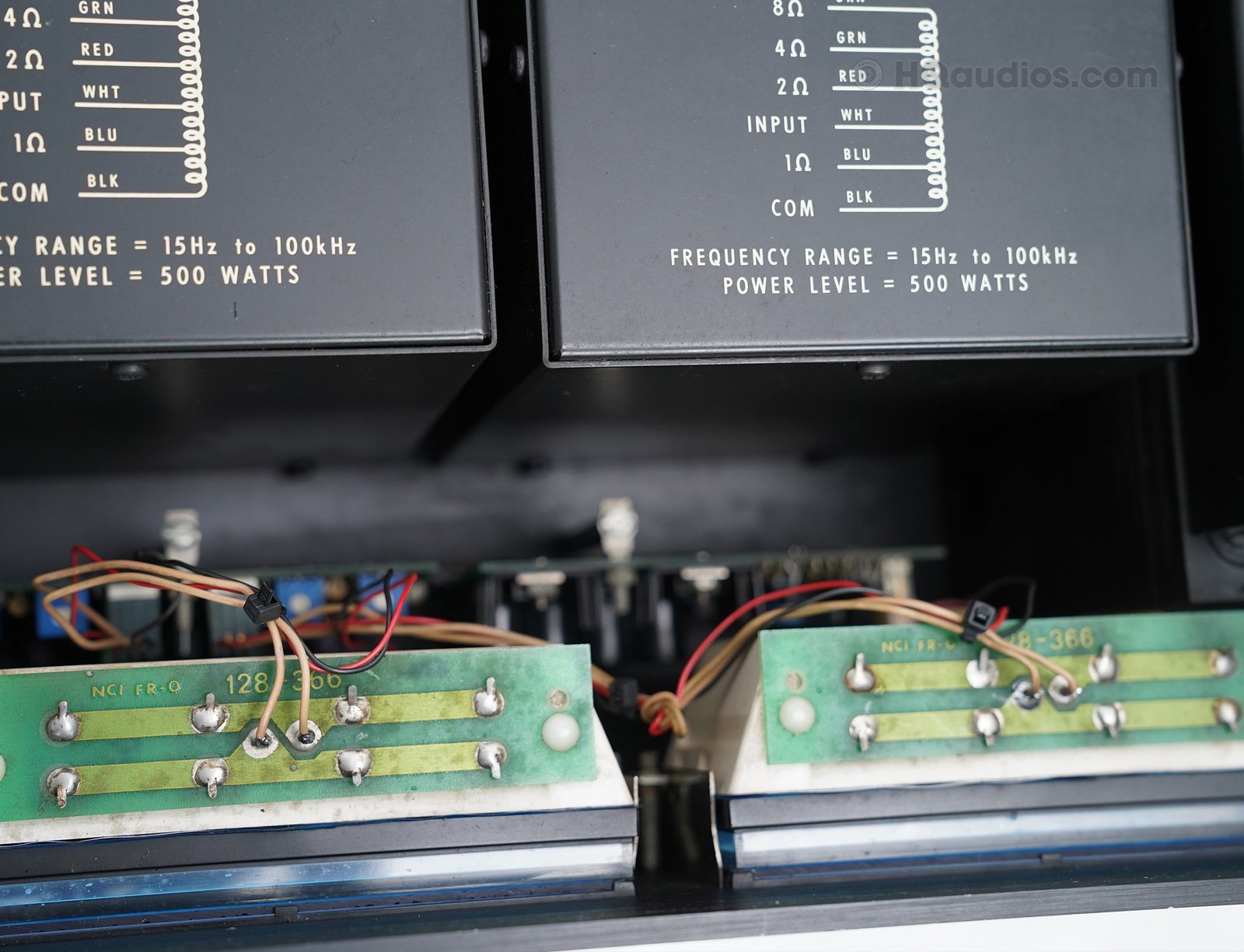 The amplifier’s capacitors were replaced with audio-grade components to ensure stable performance and prevent future failures.