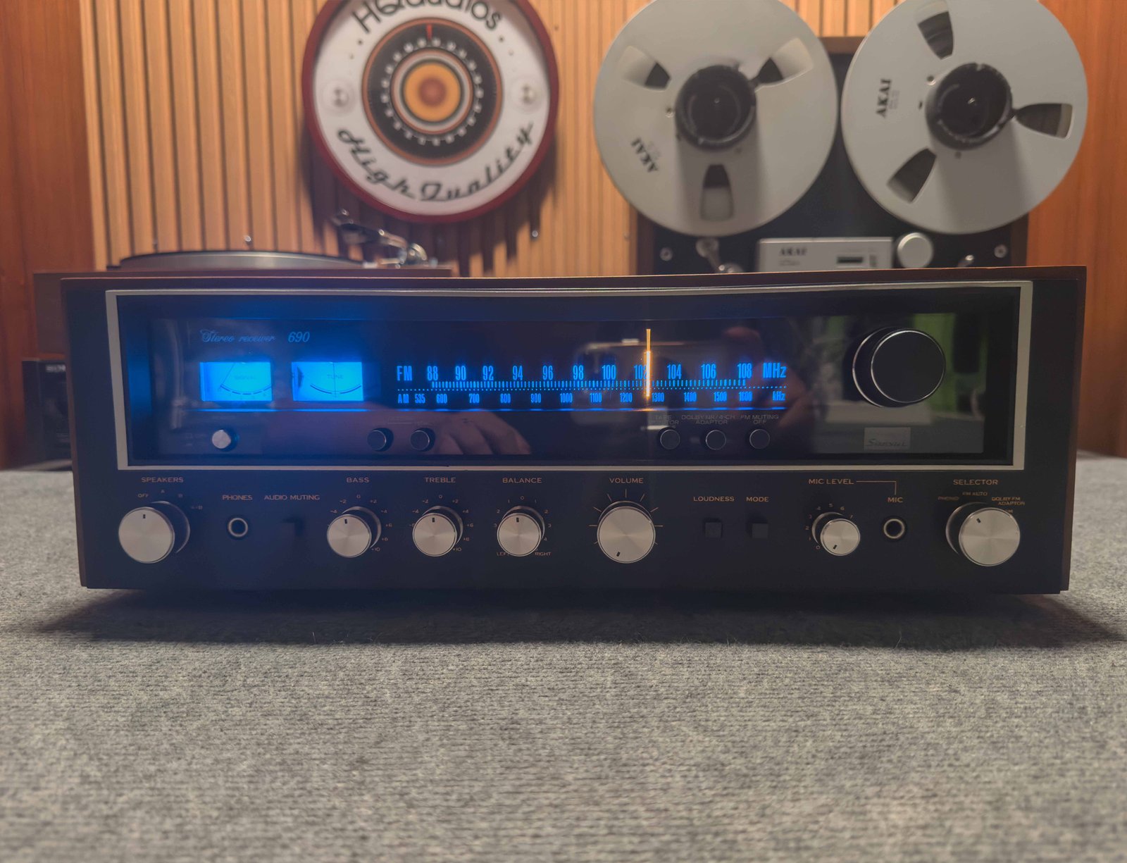 It features Sansui’s classic green-glow dial, dual tuning meters, wooden cabinet, and silver faceplate with black accent knobs. The 690 was marketed mainly in Europe and Asia, making it a special find for collectors today. Fully tested and backed by HQaudios’ 1-Year Warranty.