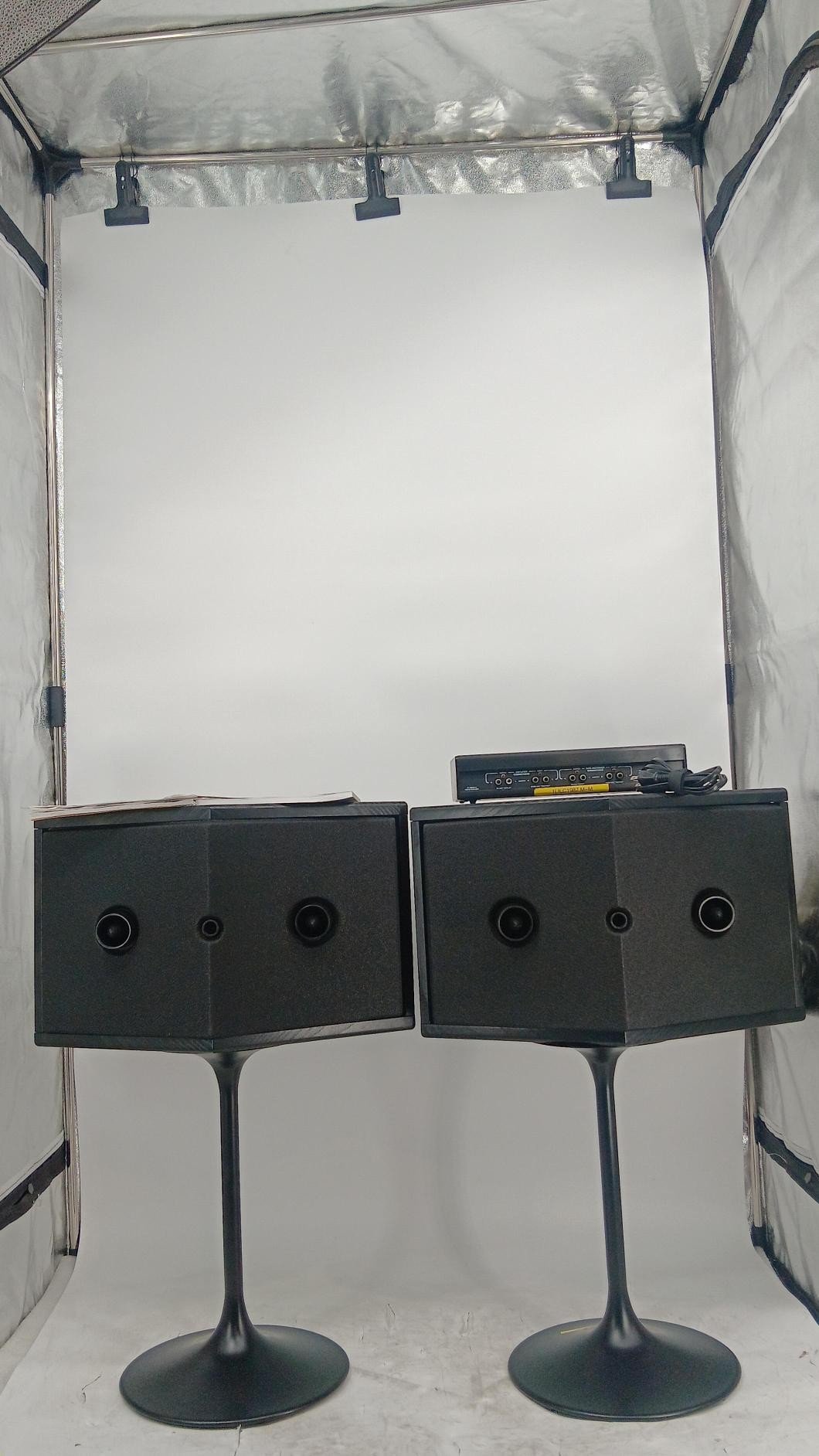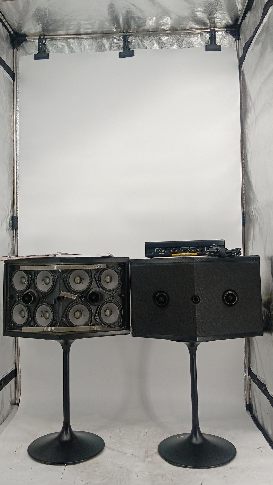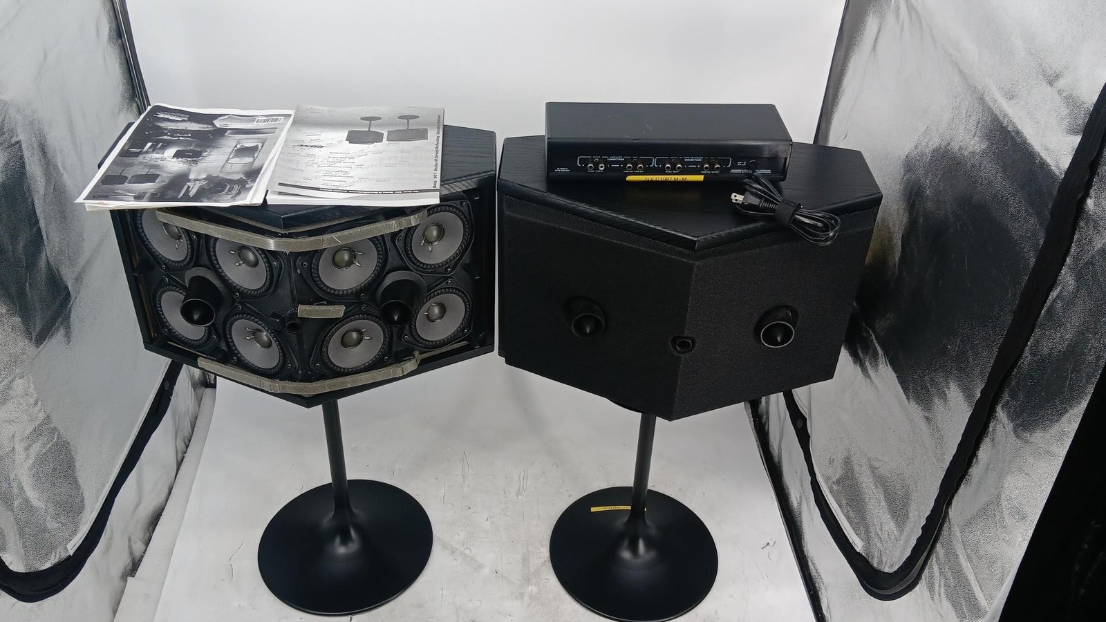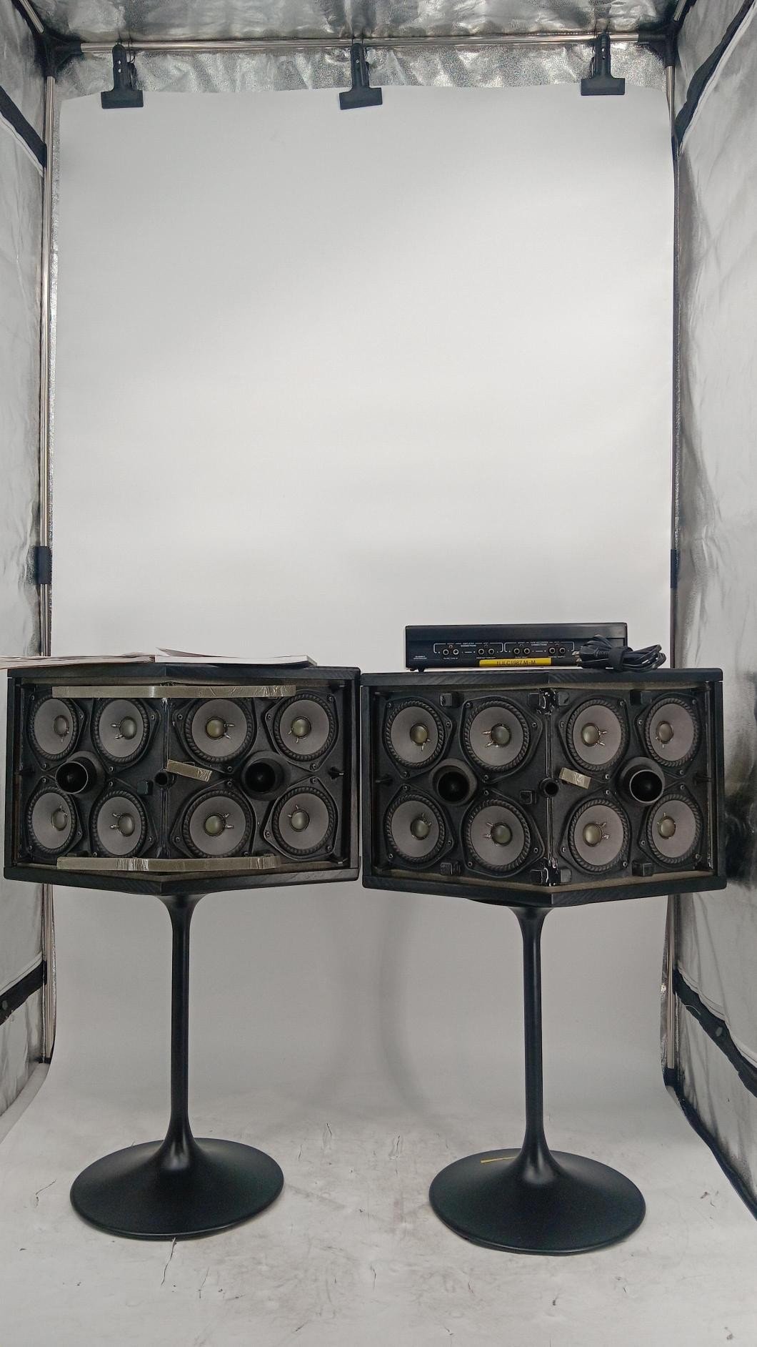 This set includes an original matched pair of Bose 901 Series VI speakers, the factory Active Equalizer, and authentic pedestal tulip stands, manual. All 18 full-range drivers (9 per speaker) have been inspected and are functioning perfectly. The EQ performs smoothly across all bands, ensuring optimal tonal balance and deep bass response.