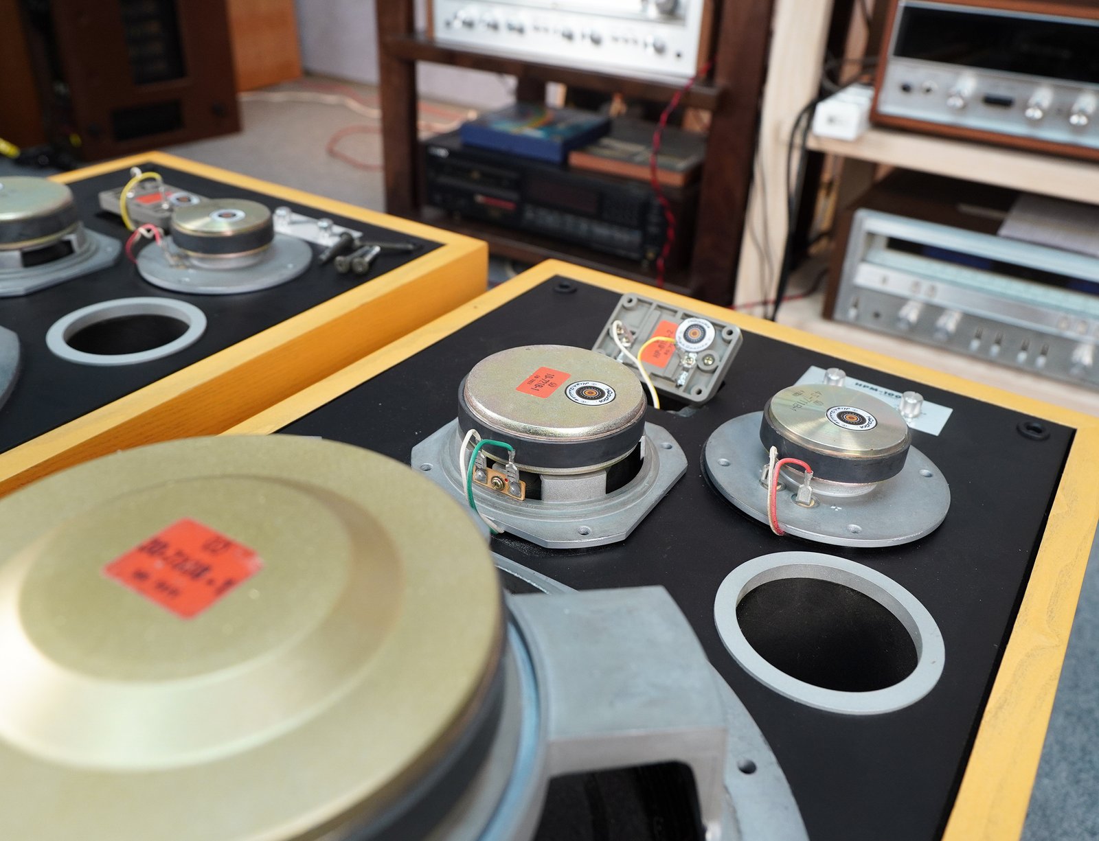 - All drivers (woofer, midrange, tweeter, and super tweeter) were carefully removed, inspected, and tested.