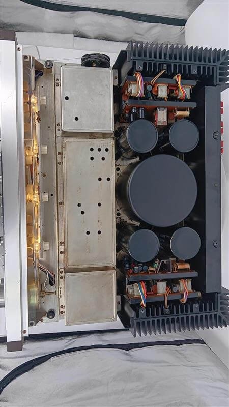 Upon inspection, the unit had scratchy controls, a dim dial, and some distortion in one channel. Therefore, it underwent servicing by our technician. Pioneer used certain transistors in this model that are known to fail after 40 years, so all of these were replaced. This upgrade resolved the distortion issue. Additionally, several questionable capacitors were replaced.