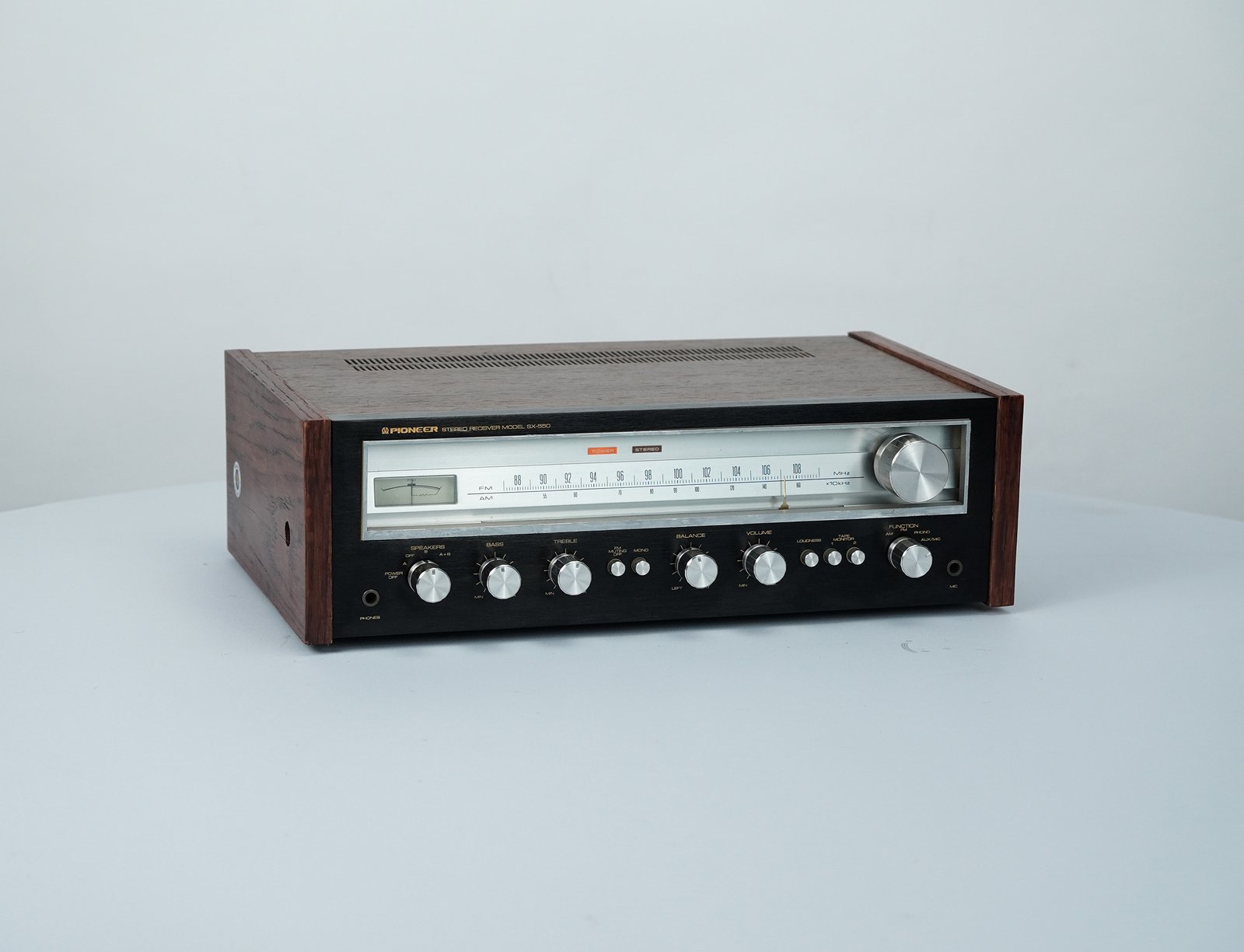 The Pioneer SX-550 is a vintage stereo receiver that captures the best of 1970s audio technology. With its sleek brushed aluminum faceplate and real wood veneer side panels, the SX-550 offers a classic design and outstanding audio performance. It is widely admired for its warm sound and reliable operation, making it a favorite among collectors and audiophiles alike.