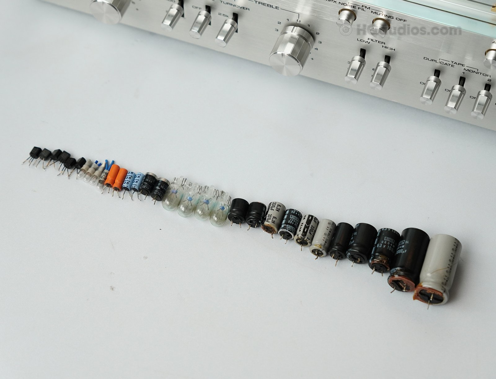 - Capacitor Replacement: Critical capacitors were replaced where needed to restore the integrity of the signal and prevent distortion or signal loss. This is a vital part of keeping the receiver’s analog warmth and performance intact.
