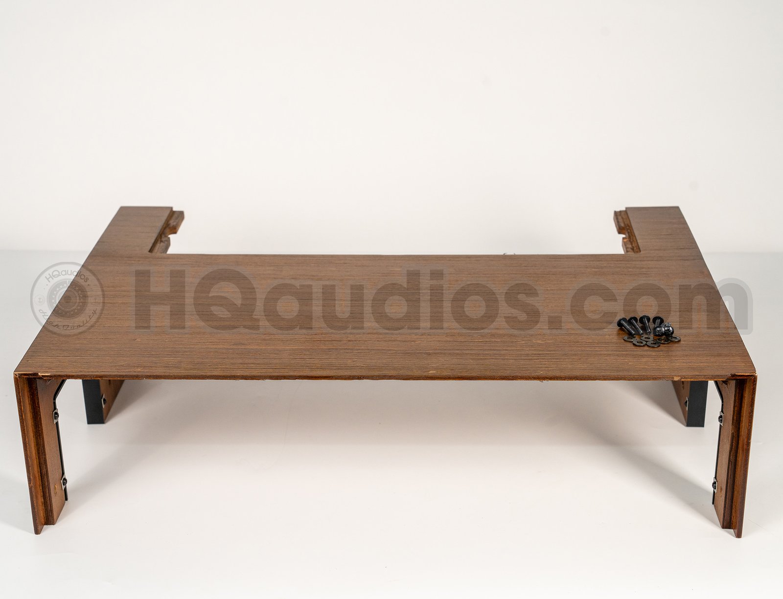 Align the side mounting points and install the included screws using the original chassis locations. Tighten gently and evenly. Do not overtighten to avoid damaging the wood or chassis threads.