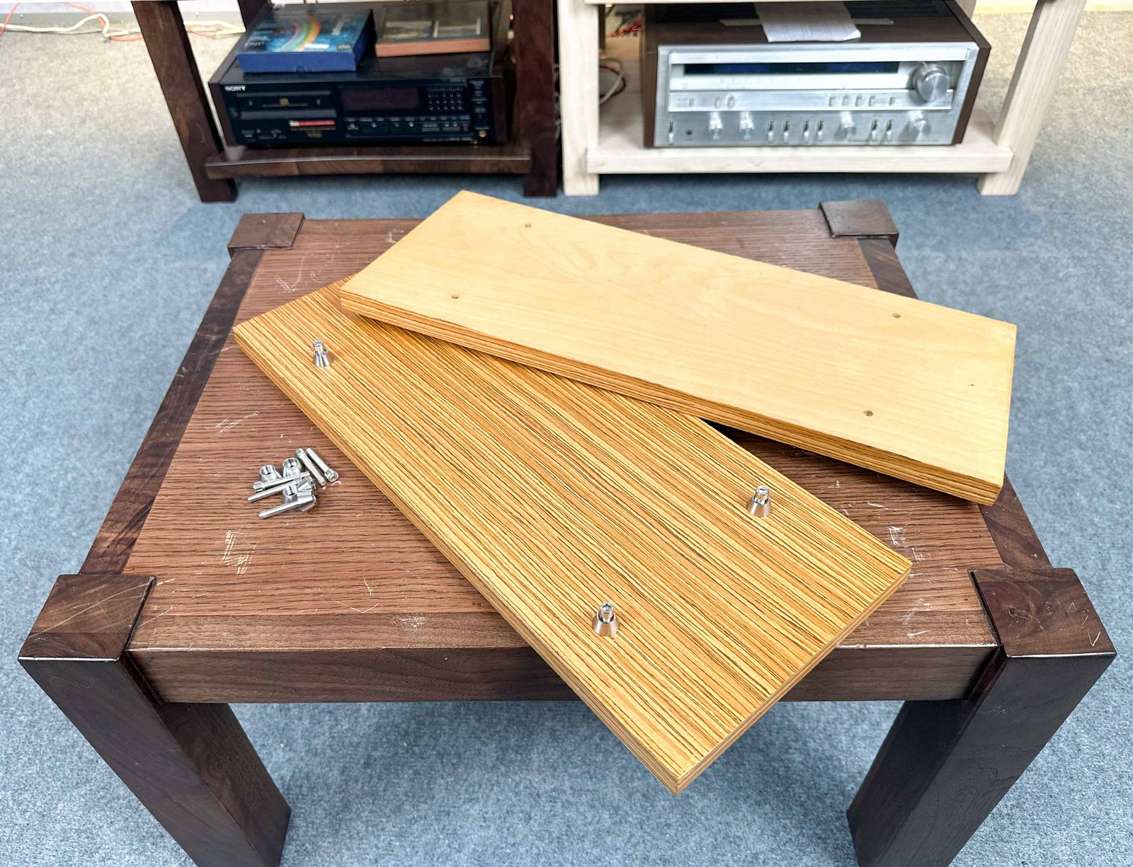 - Golden Zebrawood – Exotic striped veneer, high contrast look