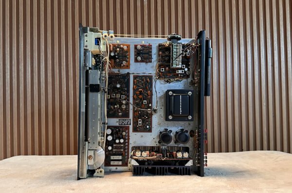 Upon inspection, the unit had scratchy controls, a dim dial, and some distortion in one channel. Therefore, it underwent servicing by our technician. Pioneer used certain transistors in this model that are known to fail after 40 years, so all of these were replaced. This upgrade resolved the distortion issue. Additionally, several questionable capacitors were replaced.