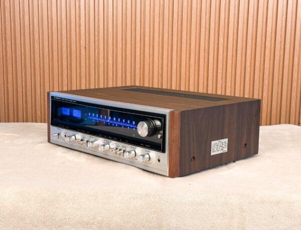 Upon inspection, the unit had scratchy controls, a dim dial, and some distortion in one channel. Therefore, it underwent servicing by our technician. Pioneer used certain transistors in this model that are known to fail after 40 years, so all of these were replaced. This upgrade resolved the distortion issue. Additionally, several questionable capacitors were replaced.