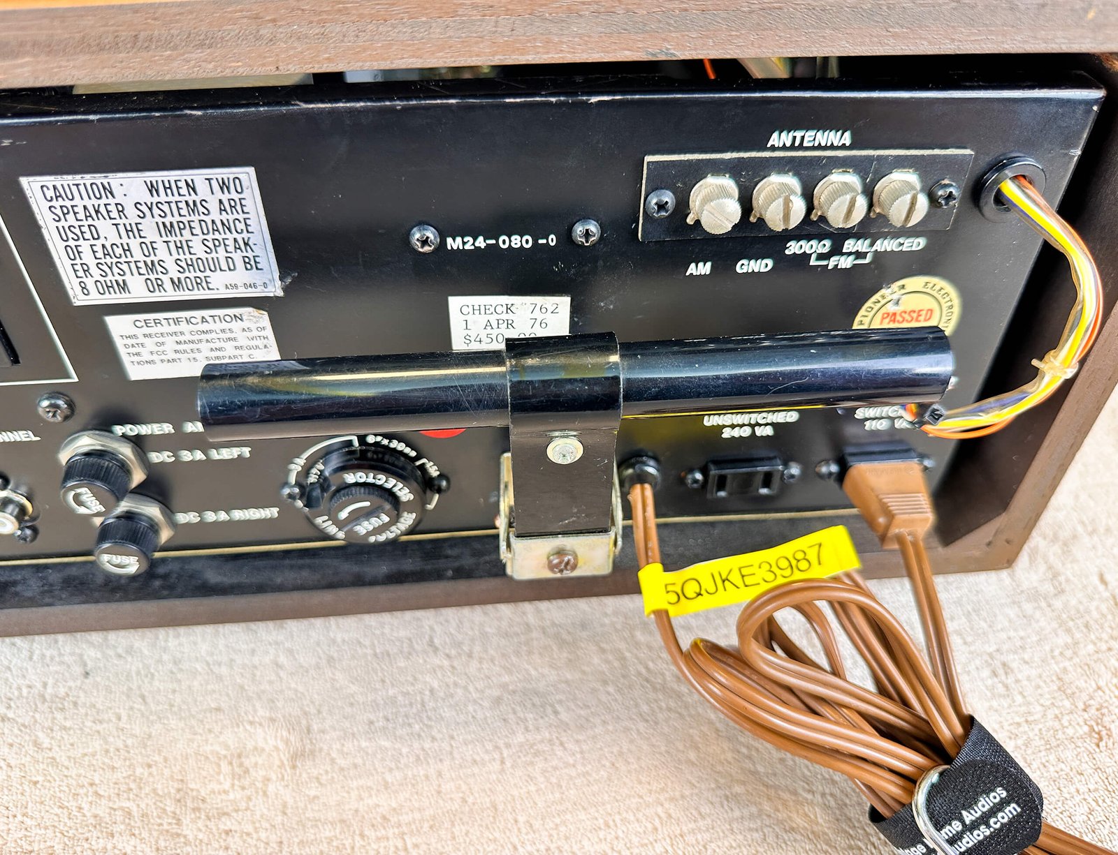 Upon inspection, the unit had scratchy controls, a dim dial, and some distortion in one channel. Therefore, it underwent servicing by our technician. Pioneer used certain transistors in this model that are known to fail after 40 years, so all of these were replaced. This upgrade resolved the distortion issue. Additionally, several questionable capacitors were replaced.