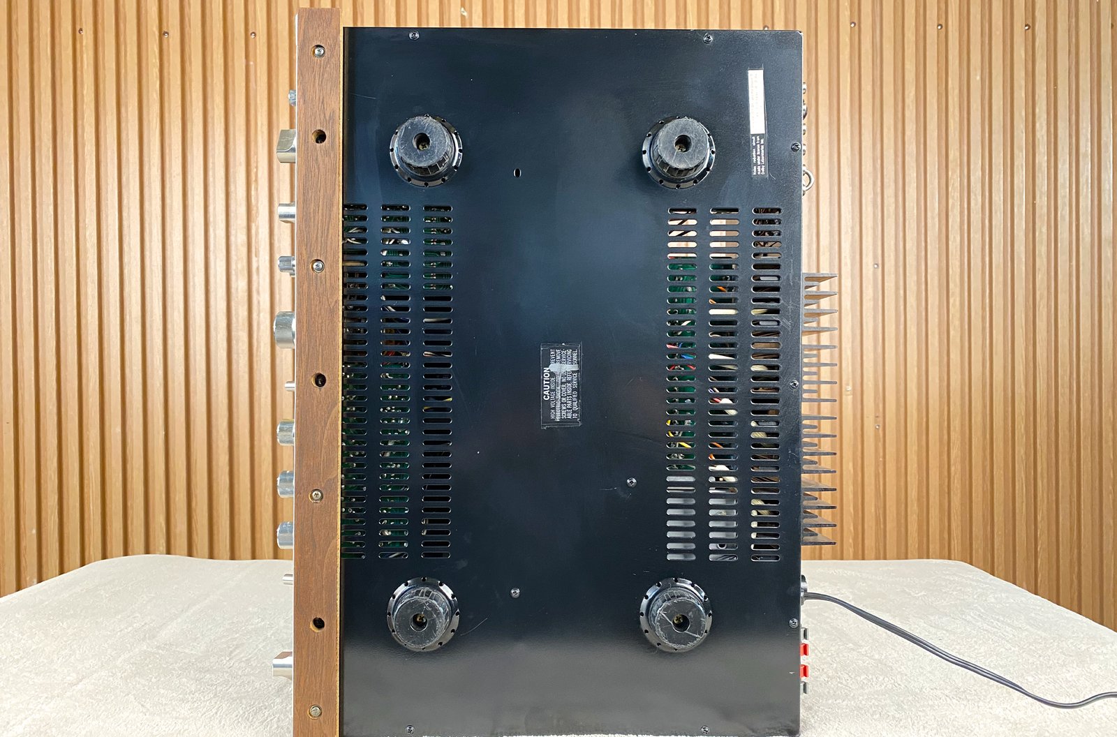Upon inspection, the unit had scratchy controls, a dim dial, and some distortion in one channel. Therefore, it underwent servicing by our technician. Manufacturer used certain transistors in this model that are known to fail after 40 years, so all of these were replaced. This upgrade resolved the distortion issue. Additionally, several questionable capacitors were replaced.